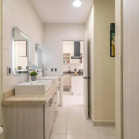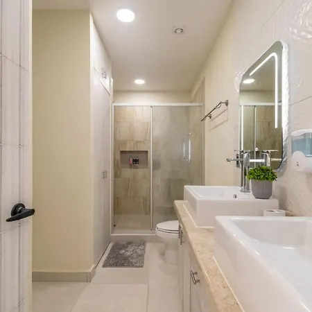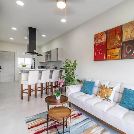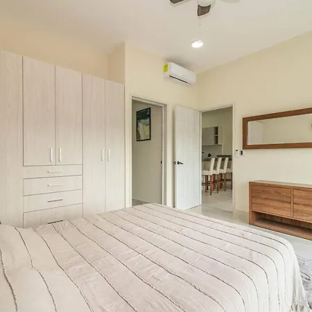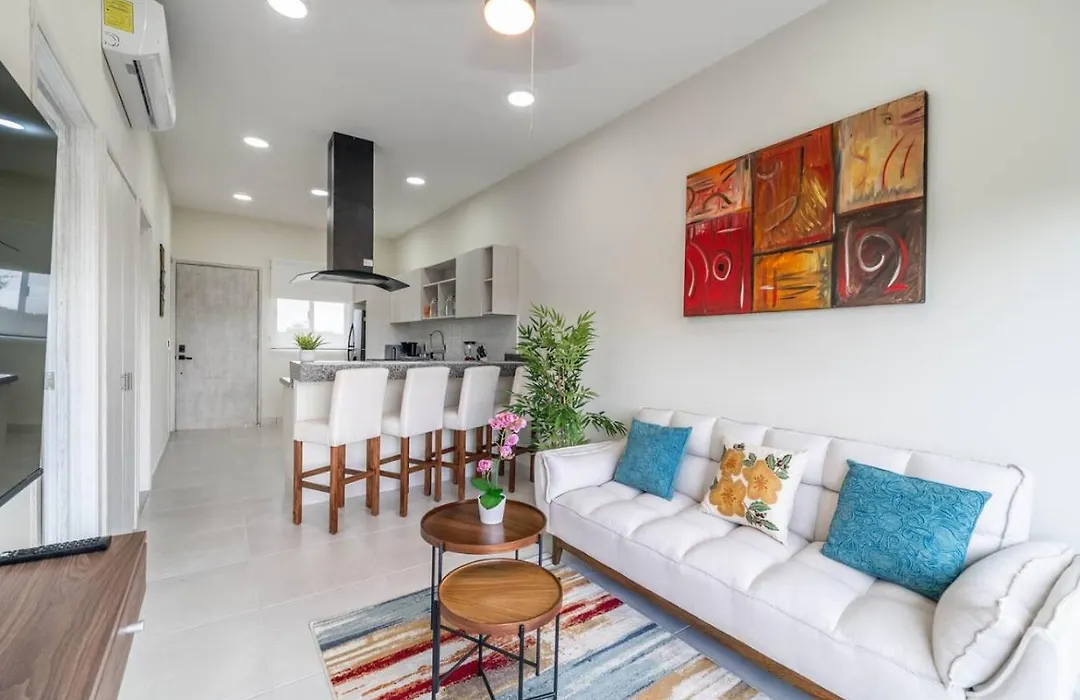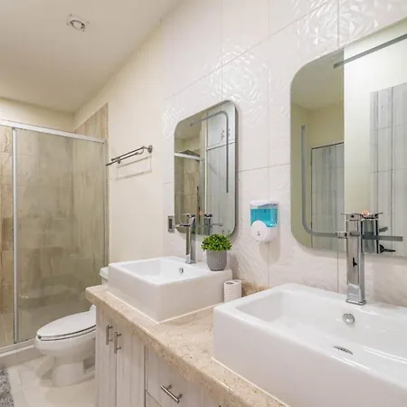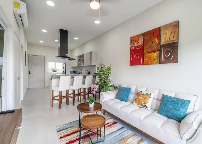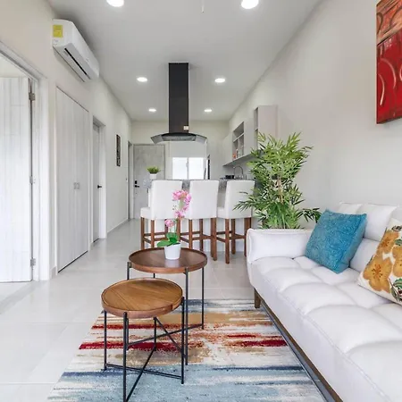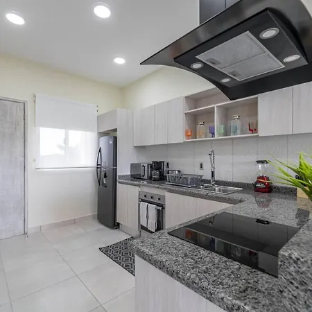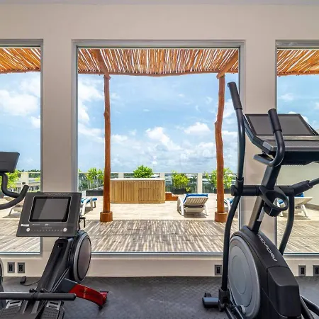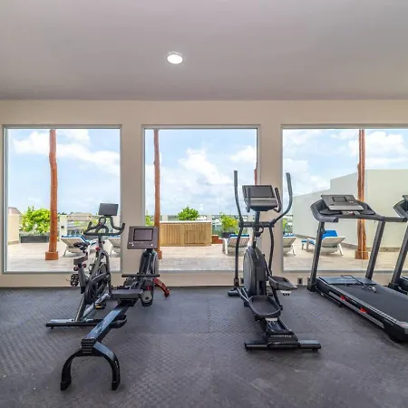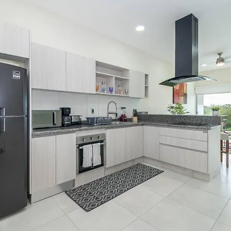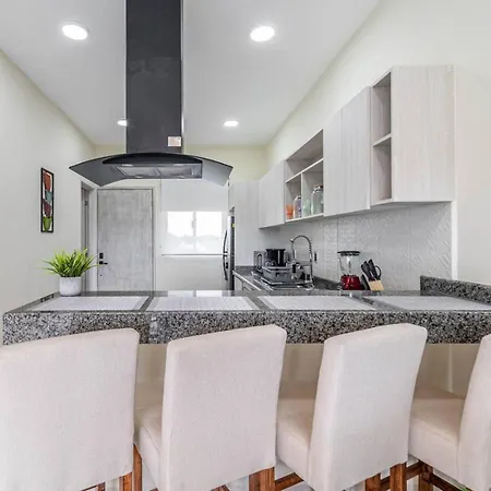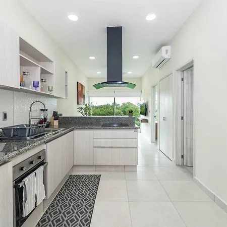 La villa Stylish 2 Bedroom Condo With Balcony, Rooftop Pool, Hottub dispose d'une cuisine complète avec une cafétière/théière électrique, un réfrigérateur et de la vaisselle. Vous aurez la possibilité de dîner à Kuchitril, situé à 40 minutes en voiture. L'aéroport National de Playa del Carmen est à 15 minutes de route de cette villa de 2 chambres.