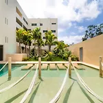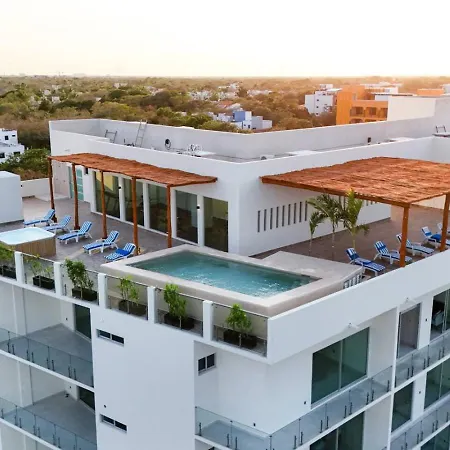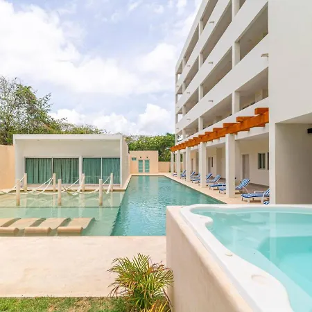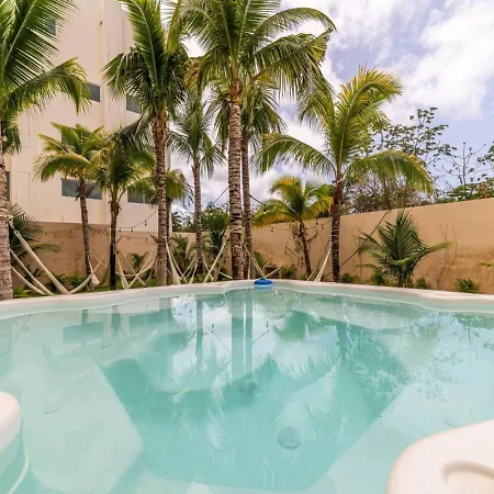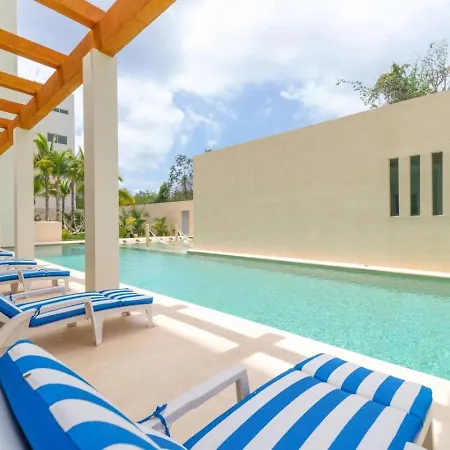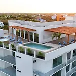 Cette villa Stylish 2 Bedroom Condo With Balcony, Rooftop Pool, Hottub Playa del Carmen se trouve à environ 5 minutes de marche de la playa, proposant à ses clients de se détendre dans un jacuzzi.